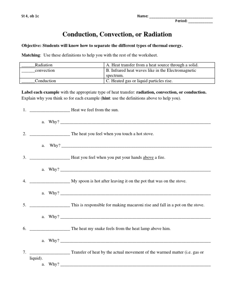 Conduction Convection Radiation Worksheet Answers - 6 P 3a 6 Design Test Models To Increase Or Decrease Heat Transfer By Conduction Convection Radiation South Carolina 6th Grade Science / Conduction, convection, radiation lesson plan template and teaching resources.